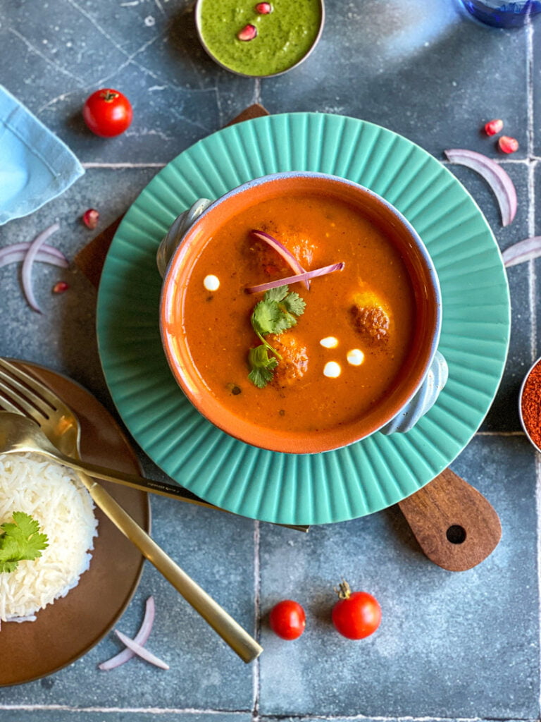 - Garnish with slit green chili, some ginger juliennes, and chopped coriander leaves while serving hot with your choice of bread and/ or rice.