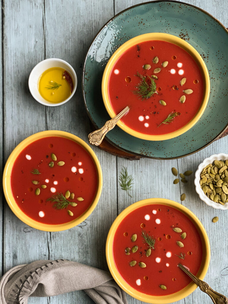 This particular version has no onion, no tomatoes and no garlic. There are numerous versions available out there, and I myself make a couple of ones too, but this one is my absolute favorite.